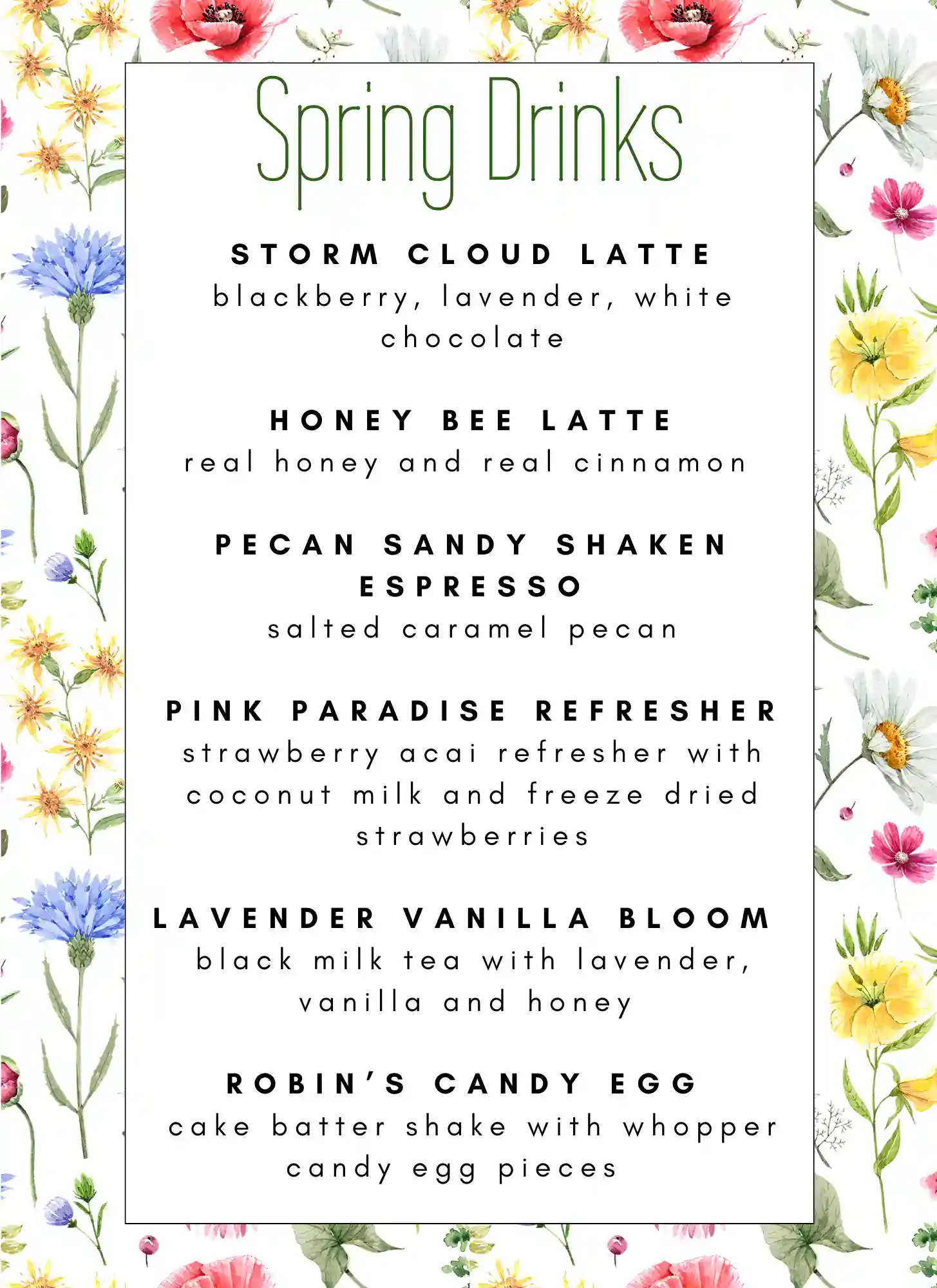 Our menu features a delightful selection of coffee drinks, smoothies, teas, and seasonal specialties. Whether you’re craving a refreshing iced beverage or a warm espresso, we’ve got something for everyone.
